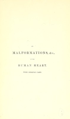 On malformations, &c., of the human heart : with original cases / by Thomas B. Peacock.