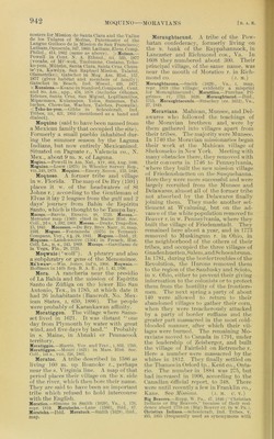 ![MOQUINO—MORAVIANS [ B. A. E. nosters for Mission cle Santa Clara and the Vallee de los Tulares of Mofras, Paternoster of the Langue Guiloco de la Mission de San Franeiseo); Latham,Opnsenlu, 347,1800; Latham, Klein.Comp. Philol., 414, 1802 (same as above). >Mutsun.— Powell in Cont. N. A. Kthnol., iii, ,')35, 1877 (voeabs. of Mi'-wok, Tuolumne, Costano, Teho- ko-yem, MutvSun, Santa Clara, Santa (Tiiz, Chnm- te'-ya, Kawciya, San Raphael Mission, Talatui, Olamentke); Gatsehet in .Mag. Am. Hist., 157, 1877 (gives habitat and iiiembers of familv); Gatsehet in Beach. Ind. Mi.seel., 430, 1877. X Runsiens.—Keane in Stanford,Compend., Cent, and So. Am., app., 470, 1878 (includes Olliones, E.slenes, Santa Cruz, San Miguel, Lopillamillos, Mipaema(;s, Kulanapos, Yolos, Suisunes, Tal- luehes, Chowclas, Waehes, Talches, Poovvells). <Tcho-ko-yem.—Gibbs in Sehooleraft, Ind. Tribes, iii, 421, 1853 (mentioned as a band and dialect). Moquino (said to liave lieon named from a Mexican family that occupied the site). Formerly a small jmehlo inhabited dur- intf the summer season by th(‘ Lacuna Indians, Imt now entirely iNIexicanized. Situatetl on I’a^rnate r., Valencia co., X. iMex., about 9 m. n. of J.,agima. Mogino.—Powell in .Am. Nat., xiv, 001, .Aug. 1880. Moguino.—Loew (1875) in Wheeler Survey Rep., VII,345,1879. Moquino.—Emory, Recon., 133, 1848. Moquoso. A former tribe and villa<j:t^ in w. Florida. The nniiiof De Bry (1591) places it w. of the headwaters of 8t Johns r.; according to the (ientleman of FJvas it lay 2 leagues from the gulf and 2 days’ journey from Bahki de Fspiritu Santo, which is thought to be Tampa bay. M0C090,—Barcia, Ensayo, 48, 1723. Mocosa.— Mercator map (1509) cited in Maine Hist. Sue. Coll., 2d s., 1,392,1809. Mocoso.—Drake, Tragcdiijs, 15, 1841. Mocosson.—De Bry, Brev. Narr., 11, map, 1591. Mogoso.—Fontaneda (1.575) in Ternau.x- Compans, Voy., x^,24, 1841. Mogozo.—Ibid., 21. Moquoso.—La'udonniere (1.504) in French, Hist. Coll. La., n. s., 243, 1809. Mucopo.—Gareilasso ile la Vega, Fla., 28. 1723. Moqwaio (‘ivolf’). A phratry and also a snbphratry or gens of the Menominee. Ma'hwaw.—Win. .lones, inf’n, 1900. Moqwaio.— HofTman in 14th Rep. B. A. E., pt. 1, 42,1890, Mora. A rancheria near the presidio of La Bahfa and the mission of Fspiritu Santo de Ziiniga on the lower Rio San Antonio, Tex., in 1785, at which date it had 2() inhabitants (Bancroft, No. Mex- ican States, I, ()59, ISSO). The jieople were probatily of Karankawan aflinity. Moratiggon, The village where Samo- set lived in 1()2I. It was distant “one day from Plymouth by water with great wind, and live days by land.” Probably in s. Maine, in Abnaki or Penmu’ook t(“rritory. Moratiggon.—Harris, Voy. amlTrav.. 1,8.53. 1705. Morattiggon.—Mourl (lO'il) in Mass, ilist. ,Soc. (5)11., Isis.. VIII. 22C>. 1.802. Moratoc. A tribe described in 1.585 as living 150 m. up Roanoki' r., jierhajis near the s. Virginia line. A map of that period iilaiTS their village on tlu> n. sidi' of the river, which tlum bori' their name. They are said to have been an important tribe which ri'fused to hold intercourse with the Fnglish. Moratico.—Simons in Smitb (1(129). Va.. i. 170, n'pr. 1819. Moratocks.—Lane (1.5,80), ibid,. 87. Moratoks,—Ibid. Moratuck.—Smith (lG29i, ibid., map, Moraughtacund. A tribe of tlie Pow- hatan confederacy, formerly living on the N. bank of the Ra])pahannock, in Lancaster and Richmond cos., Va. In 1508 they numbered about 200. Their princiiial village, of the same name, Avas near the inoiith of Moratico r. in Rich- mond CO. (j. .M.) Moranghtaouna.—Smith (1029), Va., i, map, repr. 1819 (the village; evidently a misprint for Moraughtacund). Morattico.—Purchas, Pil- griinc'). IV, 1713. 1020. Moraughtacud.—Ibid., 1715. Moraughtacunds.—Strachev (t“<(. 1012), A'a., 37, 1,849. Moravians. iMahican, Munsee, and Del- awares who followed the tt'achings of the Moravian bridhren and, wert* by them gathered into villages ajmrt from their tribes. The majority were iMuiiisee. In 1740 the Moravian mi.ssionaries began their work at the .Mahican village of Shekomeko in New York. Meeting with many obstacles there, they removed with their converts in 1745 to Pennsylvania, 'where they built the new mi.ssion village of Friedenshuetten on tln> Sus<|uehanna. Here they were more suctTssfiil and wen' largely recruited from the Munsee and Delawares, almost all of the former tribe not absorbed by the Delawares tinally joining them. They made anotlu'r .set- tlement at Wyalusing, but on the ad- vance of the wliitejiopulation removed to Beaver r. in w. Pennsylvania, Avhere they built tbe village of Friedensstadt. They remained here about a year, and in 177.2 removed to Muskingum r. in Ohio, in the neighborhood of the others of their tribes, and occujiii'd the three villages of Gnadenh net ten, Salem, and Schoenbriinn. In 1781, during the bordertroubles of the Revolution, the llurons ri'inoved tlu'm to the region of the Sandusky and Scioto, in X. Ohio, either to prevent their giving information to the colonists or to jirotect them from the hostility of the frontiers- men. Tlu'next siuiiig a party of about 140 were allowed to return to their abandoiu'd villages to gather their corn, when they were treacherously attackeil by a party of border rullians and the greater part ma.ssacn'd in the most cold- blooded maniu'r, afti'r which their vil- lages were biirni'd. The remaining I\lo- ravians movi'd to Canada in 1791, under the leaih'i’ship of Zeisbergi'r, and built the village of Fairlield on Retrenche r. Hen' a number wt're mas.sacred by the white's in 1812. They tinally settled on the Thames in ()rford tp., Kentco., Onta- rio. The number in 18.84 was 275, but had increased in 1905, at'cording to the Canadian 'tillicial report, to 248. There weri' until reci'iitly a few in Franklin co.. Fans. Set'J//.8.8/oa.s'. (.1. m. c. t. ) Big Beavers.—Rupp. \V. I'n., 47. 1810 ((ibristiaii liKiiiu