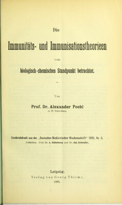 Die Immunitäts- und Immunisationstheorieen vom biologisch-chemischen Standpunkt betrachtet / von Alexander Poehl.