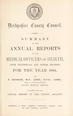 [Report 1894] / Medical Officer of Health, Derbyshire County Council.