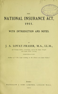 The National Insurance Act, 1911 / with introduction and notes by J.A. Lovat-Fraser.