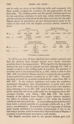 The alkaloids of some Indian aconites (A. Balfourii, A. deinorrhizum and "Chumbi aconite") / by T.A. Henry and T.M. Sharp.