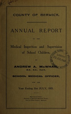 [Report 1921] / School Health Service, Berwick County Council.
