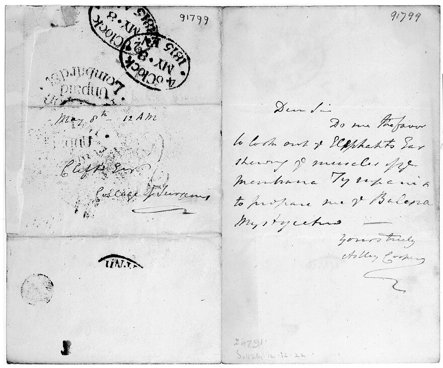 Credit: M0013870: Letter from Sir Astley Cooper to William Clift. Source: Wellcome Collection.