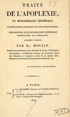 Credit: Traitde l'apoplexie ou horrhagie crale ; considations nouvelles sur les hydrochales, description d'une hydropisie crale particulie aux vieillards remment observ. Source: Wellcome Collection.