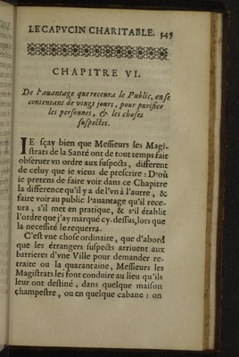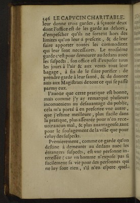 Credit: Preseruatifs et remedes contre la peste, ou le capucin charitable. Enseignant la methode pour remedier aux grandes miseres que la peste a coûtume de causer parmy les peuples : dedié à Messieurs les magistrats, & les intendans de la police des villes de France / par le pere Maurice de Tolon. Source: Wellcome Collection.