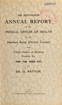 Credit: [Report 1937] / Medical Officer of Health, Hexham R.D.C. Source: Wellcome Collection.