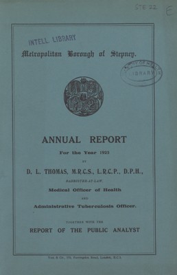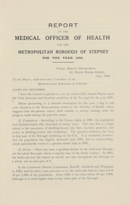 Credit: [Report of the Medical Officer of Health for Stepney]. Source: Wellcome Collection.