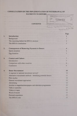 Credit: Consultation on the implementation of withdrawal of payments to donors / Human Fertilisation & Embryology Authority. Source: Wellcome Collection.