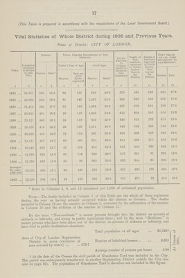 [Report of the Medical Officer of Health for London, City of ].