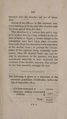 Credit: Reports of the pestilential disorder of Andalusia, which appeared at Cadiz in the years 1800, 1804, 1810, and 1813; with a detailed account of that fatal epidemic as it prevailed at Gibraltar, during the autumnal months of 1804; also observations on the remitting and intermitting fever, made in the military hospitals at Colchester after the return of the troops from the expedition to Zealand in 1809 / [Sir James Fellowes]. Source: Wellcome Collection.