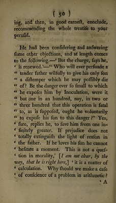 Credit: A letter from a physician in town to a friend in the country, on the subject of inoculation. In which the reasons for the practice are considered and enforced, and its consistency with our duty to God and to society ... defended / [Anon]. Source: Wellcome Collection.