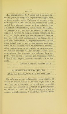 Recherches anatomo-pathologiques sur l'action du venin des serpents : action physiologique et toxicologique, thérapeutique : expériences faites au Muséum d'histoire naturelle et au Laboratoire de thérapeutique de la Faculté de médecine de Paris / par Ramon Urueta.