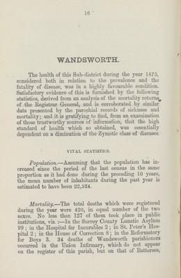 Credit: [Report of the Medical Officer of Health for Wandsworth District, The Board of Works (Clapham, Putney, Streatham, Tooting & Wandsworth)]. Source: Wellcome Collection.