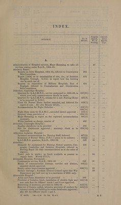 Credit: Index to volume 2 of the minutes and reports of the Army Hospitals Committee : meetings 26 to 40, minutes 346 to 467 20th October 1904 to 20th July 1905. Source: Wellcome Collection.