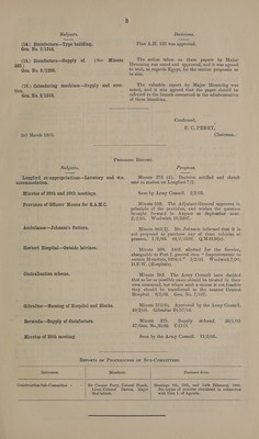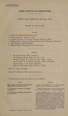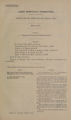 Index to volume 2 of the minutes and reports of the Army Hospitals Committee : meetings 26 to 40, minutes 346 to 467 20th October 1904 to 20th July 1905.