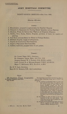Index to volume 2 of the minutes and reports of the Army Hospitals Committee : meetings 26 to 40, minutes 346 to 467 20th October 1904 to 20th July 1905.