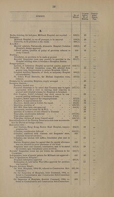Index to volume 2 of the minutes and reports of the Army Hospitals Committee : meetings 26 to 40, minutes 346 to 467 20th October 1904 to 20th July 1905.