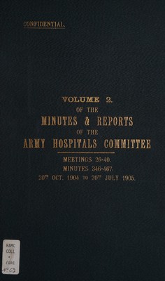Index to volume 2 of the minutes and reports of the Army Hospitals Committee : meetings 26 to 40, minutes 346 to 467 20th October 1904 to 20th July 1905.