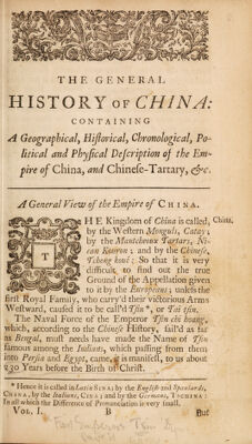 The general history of China. Containing a geographical, historical, chronological, political and physical description of the empire of China, Chinese-Tartary, Corea, and Thibet. Including an exact and particular account of their customs, manners, ceremonies, religion, arts and sciences ... / Done from the French of P. Duhalde ... [by R. Brookes].