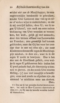 Bescheide beantwoording van den ... hooggeleerden heere P. Camper door den schryver van Het belang der maatschappye in het beteugelen van den kindermoord [A. Sterk] / [Augustus Sterk].
