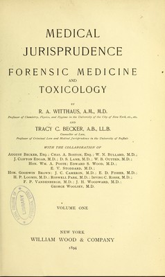 Medical jurisprudence, forensic medicine and toxicology / by R.A. Witthaus and Tracy C. Becker ; with the collaboration of August Becker [and others].