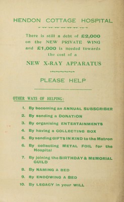Credit: Annual report with accounts : 1936 / Hendon King Edward VII Memorial Cottage Hospital. Source: Wellcome Collection.