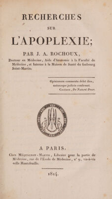 Credit: Recherches sur l'apoplexie / [Jean André Rochoux]. Source: Wellcome Collection.