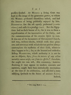 An Account of the remains of the worship of Priapus : lately existing at Isernia, in the kingdom of Naples; in two letters : one from Sir William Hamilton ... to Sir Joseph Banks ... : and the other from a person residing at Isernia : to which is added, A discourse on the worship of Priapus : and its connexion with the mystic theology of the ancients / By R.P. Knight.