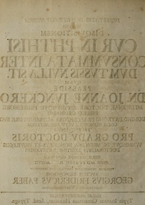 Dissertatio inauguralis medica sistens disquisitionem cur in phthisi consummata interdum tussis nulla sit ... / [Georg Friedrich Faber].