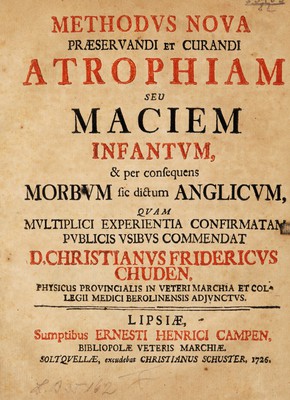 Methodus nova praeservandi et curandi atrophiam seu maciem infantium, et per consequens morbum sic dictum Anglicum / [Christian Friedrich Chüden].