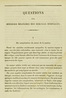 Credit: Thèse pour le doctorat en médecine : présentée et soutenue le 24 février 1840, / par C.-F.-M. Rosier, de Nolay ... I. Des complications du cancer de la matrice. ... [etc]. Source: Wellcome Collection.
