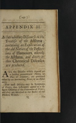 Credit: The preternatural state of animal humours described, by their sensible qualities, which depend on the different degrees of their fermentation. And the cure of each particular cacochymia ... To this treatise are added two appendixes. I. About the nature of fevers ... II. Concerning the effervescence tumours, pains, and fluxes of humours ... expecially those in the gout and asthma ... of several cocochymia's [sic] / ... By the author of the ... [i.e. Sir John Floyer]. Source: Wellcome Collection.