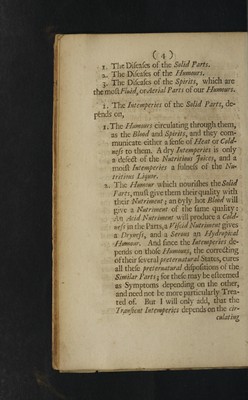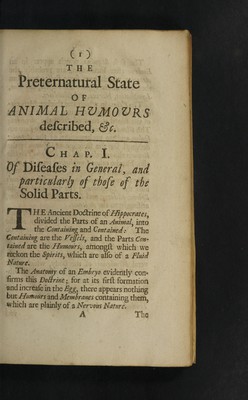 Credit: The preternatural state of animal humours described, by their sensible qualities, which depend on the different degrees of their fermentation. And the cure of each particular cacochymia ... To this treatise are added two appendixes. I. About the nature of fevers ... II. Concerning the effervescence tumours, pains, and fluxes of humours ... expecially those in the gout and asthma ... of several cocochymia's [sic] / ... By the author of the ... [i.e. Sir John Floyer]. Source: Wellcome Collection.