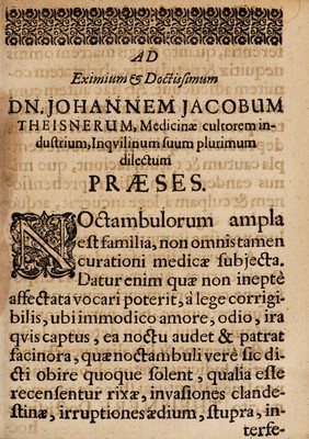 Credit: Dissertatio medica de ambulatione in somno ... / praeside ... Johanne Theodoro Schenckio, ... submittit autor Johannes Jacobus Theisnerus. Source: Wellcome Collection.
