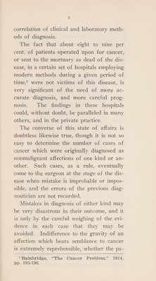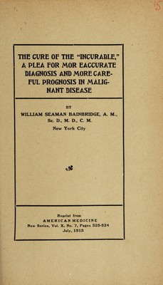 The cure of the "incurable" : a plea for more accurate diagnosis and more careful prognosis in malignant disease / by William Seaman Bainbridge, A.M., Sc.D., M.D., C. M., New York City.