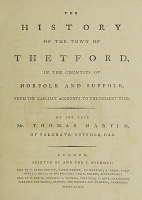 The history of the town of Thetford, in the counties of Norfolk and Suffolk, from the earliest accounts to the present time / [Edited from author's MS. by Richard Gough].