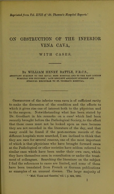 On obstruction of the inferior vena cava, with cases / by William Henry Battle.