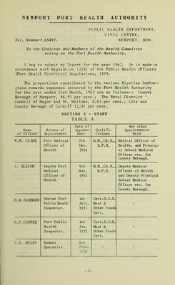 [Report 1962] / Medical Officer of Health, Newport (Gwent) Port Health Authority.