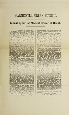 Credit: [Report 1900] / Medical Officer of Health, Warminster U.D.C. Source: Wellcome Collection.