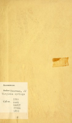 The Virginia springs, and springs of the South and West / By J. J. Moorman ... With maps and plates, and the routes and distances to the various springs.