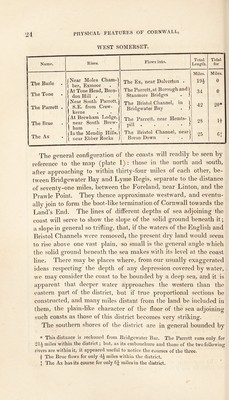 ![DEVON. Name. The Tamar * The Tavy The Plym The Lyd The Yealm The Erme The Avon, or Aune . The Dart The Teign The Ex The Culm The Otter The Axe The Yart The Torrid ge The Okement The Taw The Little Dart The Yeo The Bray River The Lyne Rises. At Wooley Barrows,'! 5 miles S. from Hart- > land. . .1 |At Okement Hill, ) \ Dartmoor . . J At the Plym Head, Cater’sBeam, Dart- moor j Branscom.be Loaf, 1 [ Dartmoor . . J } At Erme Head, Ca- ter’s Beam, Dart- moor At Aune Head, Ca ter’s Beam, Dart- moor fAt Dart Head, Dart-) \ moor . . j i Near Siddaford Tor,) ( Dartmoor . . j | At Ex Head, Ex- j j moor . . J {Near Church Staun-1 ton, in the Blaclo Down Hills . j {Near Otterford, in the Black Down Hills At Axnoller, near Beaminster, Dorset {Near Otterford, in the Black Down Hills | At the Ditchen Hills,) t near Clovelly . j At Craumere Pool, Okement Hill,Dart- moor , At the Taw Head, Okement Hill, Dart- moor n Near East Anstey . (Near Chapman Bar-} “ r . J jOnRakenford Moor, \ Rakenford . | rows, Exmoor |On Black Barrow ) 1 Down, Exmoor . j Flows into. Plymouth Sound, at Mount 1 Edgcumbe „ . j The Tamar, near Tamerton) Foliot . . . j Plymouth Sound, at Mount) Batten . . , j The Tamar, near Lifton . The English Channel, at] Yealm Mouth The English Channel, at, Bigbury Bay ’.at} ’. a‘} The English Channel, at) Bigbury Bay . . } The English Channel, near) Dartmouth . . . j The English Channel, at) Teignmouth . . J The English Channel, at) Exmouth . . . j The Ex River, near Stoke Cannon ke} The English Channel, near) Budleigh Salterton . j |The English Channel, near) \ Axmouth . . . j The Axe, near Kilmington The Bristol Channel, near) Appledore . . . j The Torridge, near Meeth The Bristol Channel, near) Appledore . . . J The Taw, near Chumleigh |The Taw, near Newnham) \ Bridge . . . / The Yeo, near Saterleigh The Bristol Channel, at ) Lynmouth . . . j Total Length Miles. 59 23 16 13* 14 14* 23 36 33 54* 25* 26 23 14 53 18 48 15 19 15 11 Tidal for Miles. 17* 3 0 83 2^ 3* 10* 5 7 0 |1* H o 9 0 11* 0 0 0 0 This may almost equally be considered a Cornish river, as it separates Cornwall trom Devon for nearly its whole course.](https://iiif.wellcomecollection.org/image/b29350864_0061.jp2/full/800%2C/0/default.jpg)