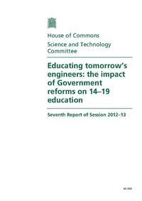 Educating tomorrow's engineers : the impact of government reforms on 14-19 education : seventh report of session 2012-13 : report, together with formal minutes, oral and written evidence / House of Commons, Science and Technology Committee. Open Government Licence. Source: Wellcome Collection.