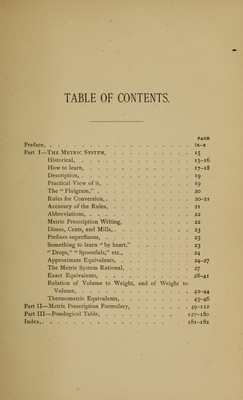 Credit: The metric system in medicine : containing an account of the metric system of weights and measures, Americanized and simplified, a comprehensive dose table, and three hundred practical illustrations of metric prescription writing, selected from recipes in actual use in hospital and out-door practice / by Oscar Oldberg. Source: Wellcome Collection.