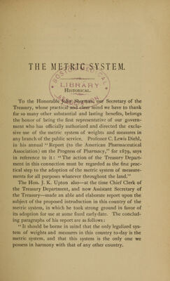 The metric system in medicine : containing an account of the metric system of weights and measures, Americanized and simplified, a comprehensive dose table, and three hundred practical illustrations of metric prescription writing, selected from recipes in actual use in hospital and out-door practice / by Oscar Oldberg.
