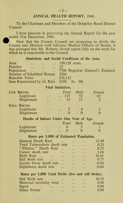 Credit: [Report 1948] / Medical Officer of Health, Dolgellau / Dolgelley R.D.C. Source: Wellcome Collection.