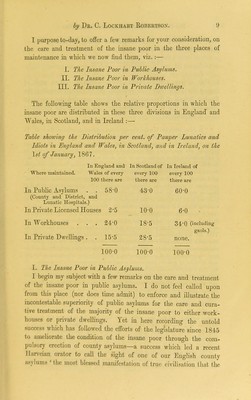 The care and treatment of the insane poor : the president's address read at the annual meeting of the Medico-Psychological Association (held at the Royal College of Physicians, July 31, 1867) / by C. Lockhart Robertson.