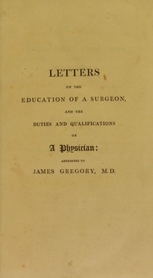 Letters on professional character and manners: on the education of a surgeon, and the duties and qualifications of a physician: addressed to James Gregory, M.D. ... / By John Bell.