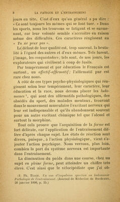 La fatigue et l'entraînement physique / par le Dr Philippe Tissié ... Lettre-préface de M. le professeur Ch. Bouchard.