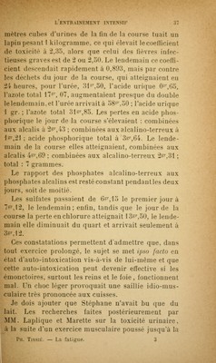 La fatigue et l'entraînement physique / par le Dr Philippe Tissié ... Lettre-préface de M. le professeur Ch. Bouchard.